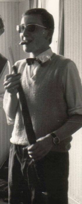 This guy is the reason, it's Scotch of course, as usual in those days complete with rolled umbrella and bow-tie. He's almost certainly accompanying Jr. Walker on saxophone, the photo having been taken at about five in the morning after an all night party in the late 1960s.